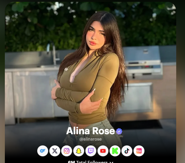 Esta presente en todas las redes, incluso en Twic, te enviamos el link para que la puedas ubicar rapidamente: https://link.me/alinarose